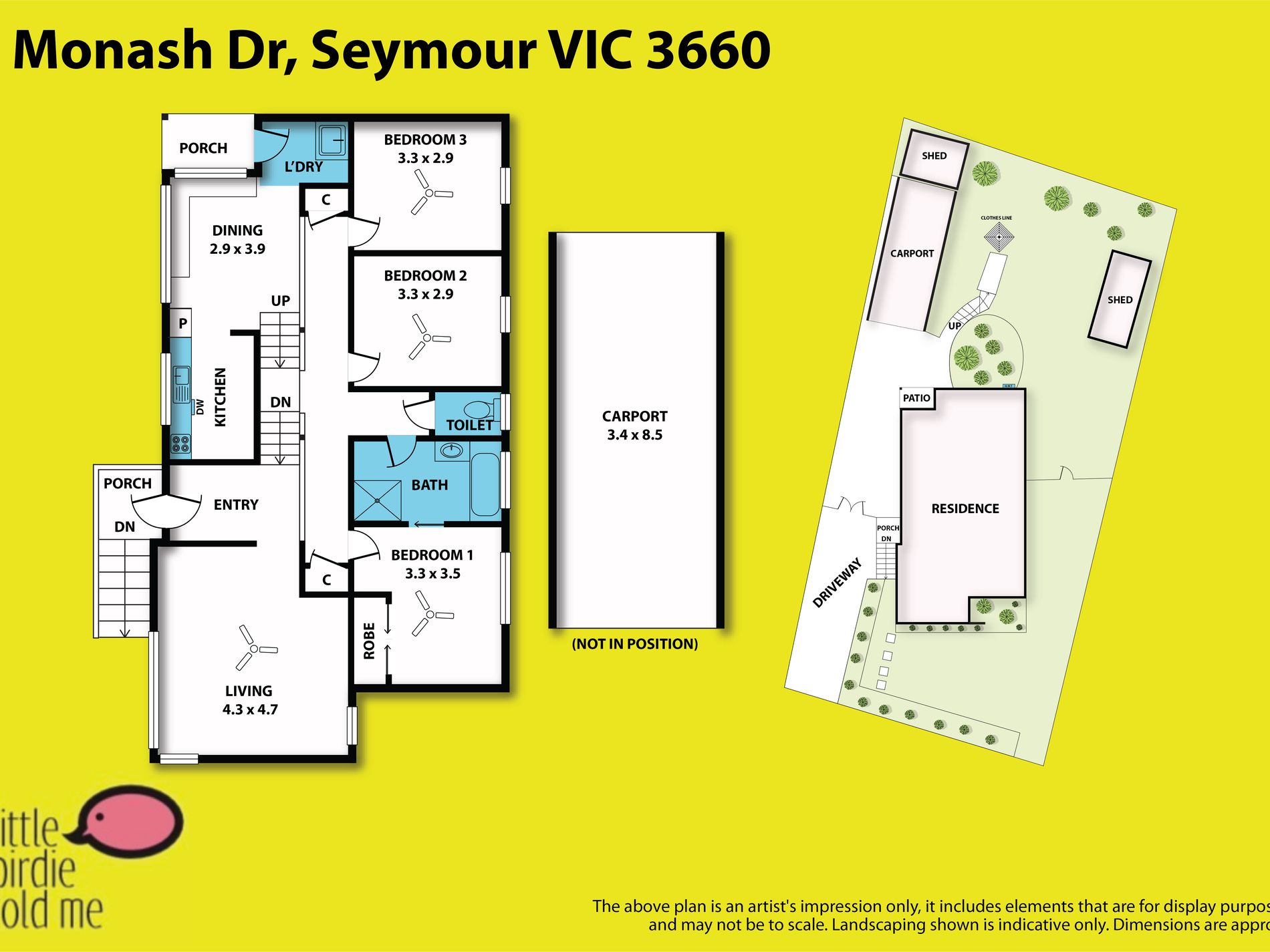 Secure yard on 575m² (approx.)