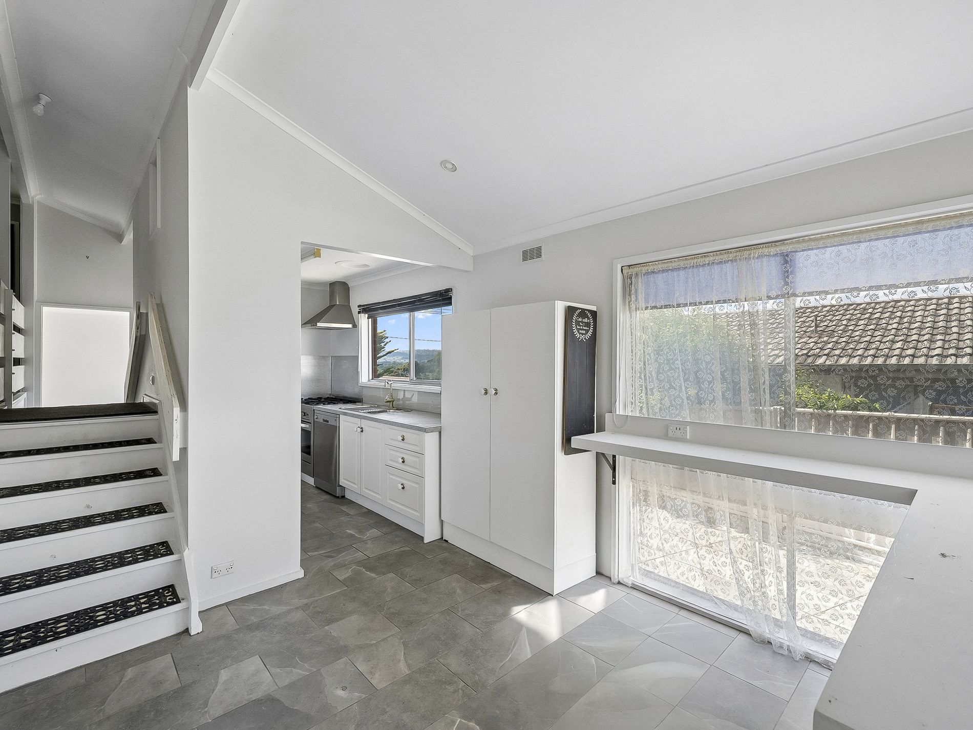 Inside, you’ll find a spacious lounge area with plenty of natural light, flowing through to a functional kitchen and dining space complete with modern finishes. The home offers three bedrooms, all serviced by a stylishly updated central bathroom.